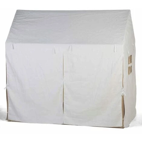 The cover is made of canvas fabric and also has cut out doors and windows on the side. So every night feels like camping. All sides can be easily rolled up with the included ribbons. Bedtime has never been this much fun!