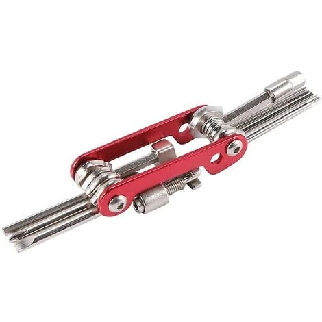 1. An indispensable tool for bicycles and this kit can help you solve most problems with bicycles, and can also be used as a tool for daily home maintenance 2.9-in-1 multi-function tool 3. Rugged bicycle tool-different from other tool kits, this tool kit has been heat-treated and durable alloy steel will make it have a longer service life, full-featured, universal bicycle tool kit 4. Maximum portability, foldable 5. Portable bicycle tool kit set-small enough to be thrown into your school bag or pocket  Colour:red Material:Aluminum alloy  Package Contents: 1 x Bike repair tool  Only the above package content, other products are not included. Note: Light shooting and different displays may cause the color of the item in the picture a little different from the real thing. The measurement allowed error is +/- 1-3cm.          Â