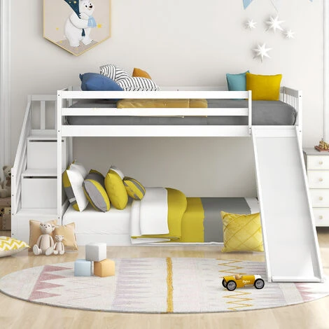 This bunk bed with stairs is practical and safe, and the storage function makes full use of the space. Functional and aesthetic, this bunk bed will enhance any bedroom.