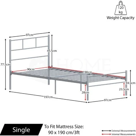 Home Discount offers this stunning new product with a modern stylish design, the Dorset Bed 3ft Single. Elevate your interior décor and inject luxury into your bedroom with this beautiful metal bed frame. Included in the set are a sturdy and durable steel bed frame, gorgeous headboard, and beautiful low foot end in a corresponding design. The simple, yet effective design allows light to pass through the headboard, showing off the wall behind to brighten up your space with an airy feel. This is perfect for smaller or darker spaces without much natural light, giving an illusion of space.
