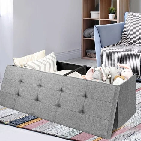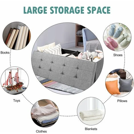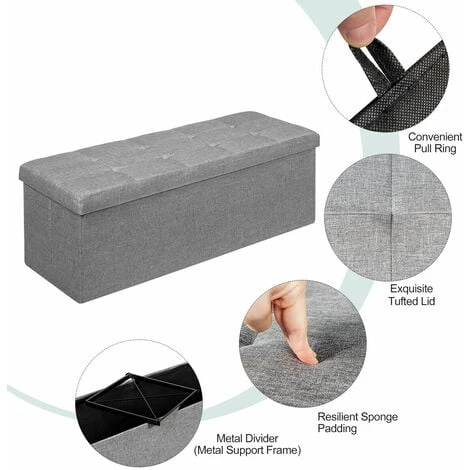 The overall frame is constructed of high-quality MDF, which ensures a high load bearing capacity without easy deformation. Soft fabric covering and thick padding provide a great sitting experience. Roomy interior storage space can meet the needs of storing clothes, blankets, shoes and other daily necessities. It¡¯s also worth mentioning that the metal divider provides added stability and can realize classified storage. Besides, equipped with detailed instructions, this storage ottoman can be assembled quickly.