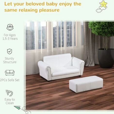 Why must adults always enjoy all the fun? The HOMCOM children’s 2 seater sofa set allows your children to enjoy the same relaxation, but the size is small and suitable for children! It features 2 seater, two-side armrest and a footstool, providing your children with ultimate comfort and security. The solid wood structure and soft padding can support a weight of 60 kg(sofa). Recommended for children from 3 to 5 years old. It is also a great place for your children and their friends to read, play and watch TV together. An ideal gift for your little ones in their childhood and will be a perfect decoration in the nursery or playroom.