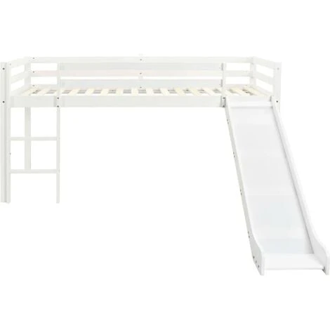 This children’s loft bed has been crafted from solid pine wood and designed for entertaining as well as optimising space. The bed is equipped with guard rails on both bed edges to keep your kid from falling out of the bed at night. The space below the loft bed can be used for playing, studying or storage. The loft bed is delivered with a recreational slide. The slide and the ladder can be assembled either on the left or right. The bed is suitable for 90 x 200 cm mattress. Please note the mattress is not included in the delivery.