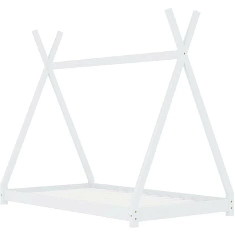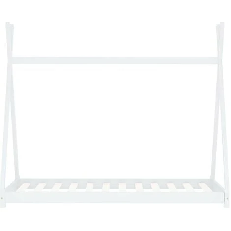 Create the ultimate hideaway in your children’s bedroom with our fantastic bed frame! The bed features novelty crossover framework inspired by the cool tipi style tents where you can hang bed curtains to create privacy for your kid. It can also be used as a reading nook or a play house for your child. Made of solid pine wood, this bed frame is exceedingly sturdy and durable. The strong slats offer the needed support and are highly comfortable. This bed frame is suitable for a mattress of 70 x 140 cm. Please note that delivery includes a bed frame only; a mattress and curtains are not included. The bed is easy to assemble. You can check our shop for the matching mattresses.