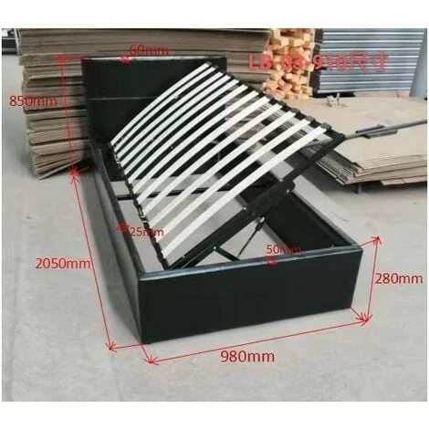 KOSY KOALA Ottoman Leather Side Lift Storage Bed (3ft Single, Black)