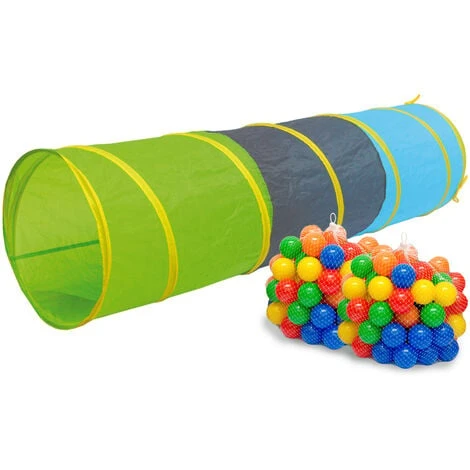 The tunnel offers endless possibilities for play: it can be used as an original entrance for a playhouse / toy tent / ball pit, if you connect the ends of the tube to several tents, you can even build a whole maze, a village, etc.