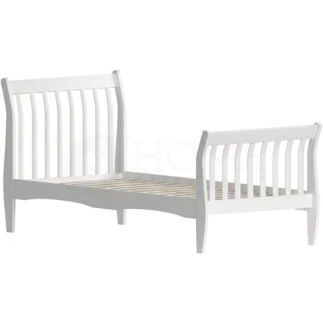 Home Discount offers this stunning new product with a modern stylish design, the Orion 3ft Single Sleigh Bed. This modern bed frame is expertly crafted with a solid wood bed frame and slatted base made from sturdy wood. Designed by our crafters with passion, determination and technique, this bed has a subtle curved base plinth and legs with an otherwise minimal design. Constructed low to ensure your kids can climb effortlessly in and out of the bed without assistance, whilst still having enough space underneath for storage. We aim to create furniture that visually motivates, provides positivity and emotional well-being yet is always highly practical and handy at wallet-saving prices.