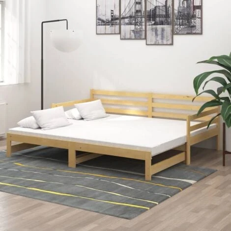 The sofa bed is made of solid pinewood, making it sturdy and stable. Featuring a pull-out bed, the piece of furniture can be easily converted into a sofa during the day and a comfortable bed at night. This daybed frame maximises the available floor space while providing sleeping space for two people, making it an ideal choice for people with limited living space. Moreover, the pull-out bed is equipped with a side board that will keep the user from rolling out while sleeping.