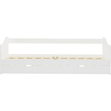 Combining the luxury of a sofa with the convenience of a guest bed, our multi-functional pull-out wooden sofa bed will surely make a practical and eye-catching addition to any interior! Featuring a pull-out bottom bed that is equipped with 4 casters, the piece of furniture can be easily converted into a sofa during the day and a comfortable bed at night. This daybed frame maximises the available floor space while providing sleeping space for two people, making it an ideal choice for people with limited living space. Moreover, the bottom bed is equipped with a side board that will keep the user from rolling out while sleeping. The whole bed frame has a sturdy wooden construction, which makes it very durable, and suitable for day-to-day use. The item is easy to assemble. Please note delivery includes the bed frame only, mattresses are not included. You can check our shop for the matching mattresses.