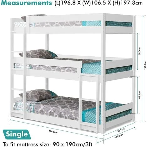 - Product codeSingle Triple Bunk Bed M001 White 24320+24321+24322