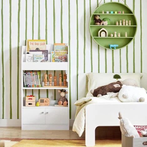 SoBuy White Wood Children‘s Storage Display Bookcase Cabinet KMB11-W