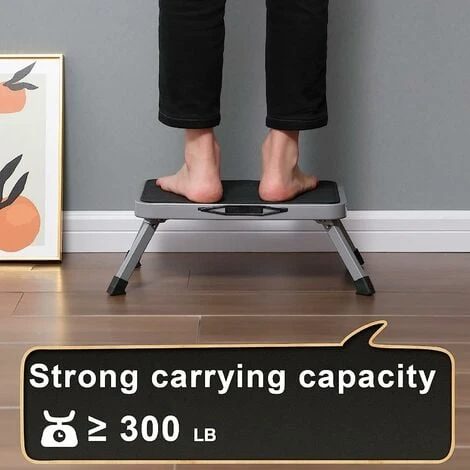 Foldable Design: Easily fold and lock the step stool legs when not in use. Compact design folds flat for easy storage in a closet or garage. Integrated handle for easy transport. When