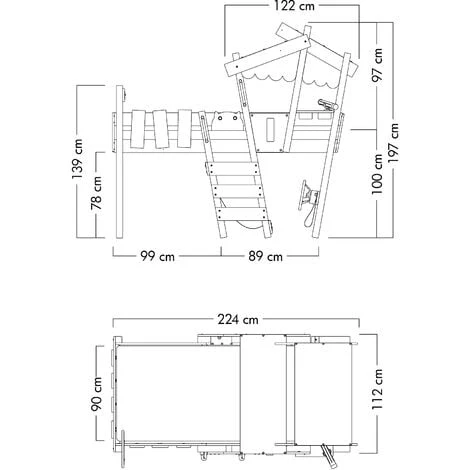 Kids loft bed with angled cottage Wickey CrAzY Hutty